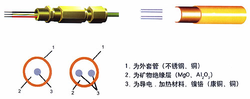 2、鎳鉻合金芯不銹鋼護(hù)套MI加熱電纜