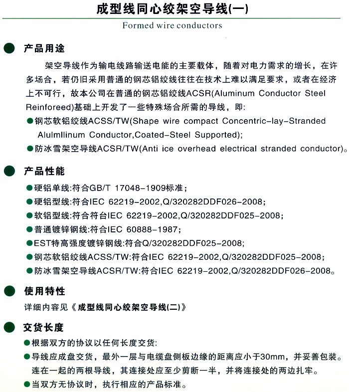 成型線同心絞合架空導(dǎo)線